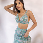 Azarin Blockpirnted Bralette And Frilly Long Skirt