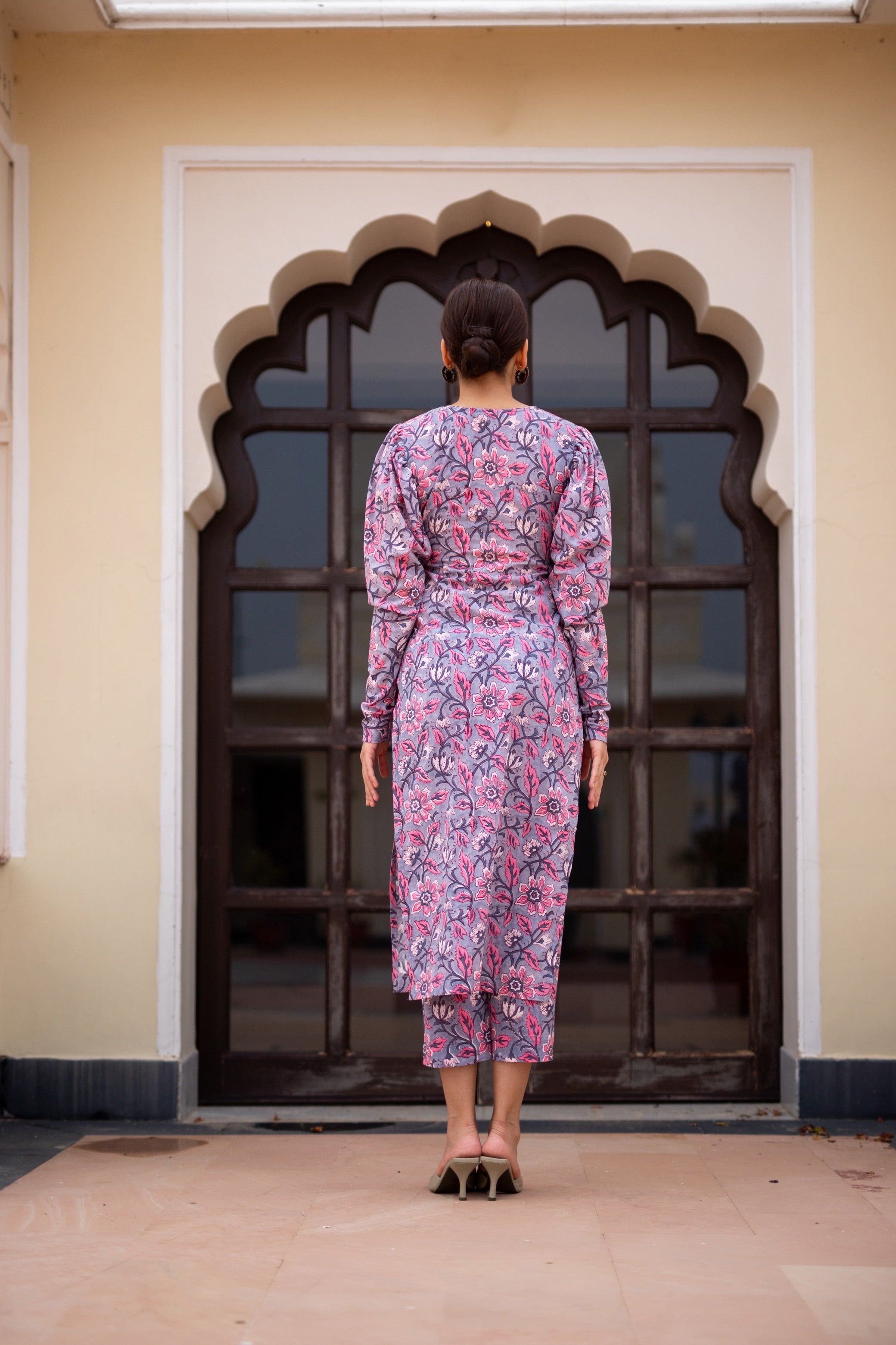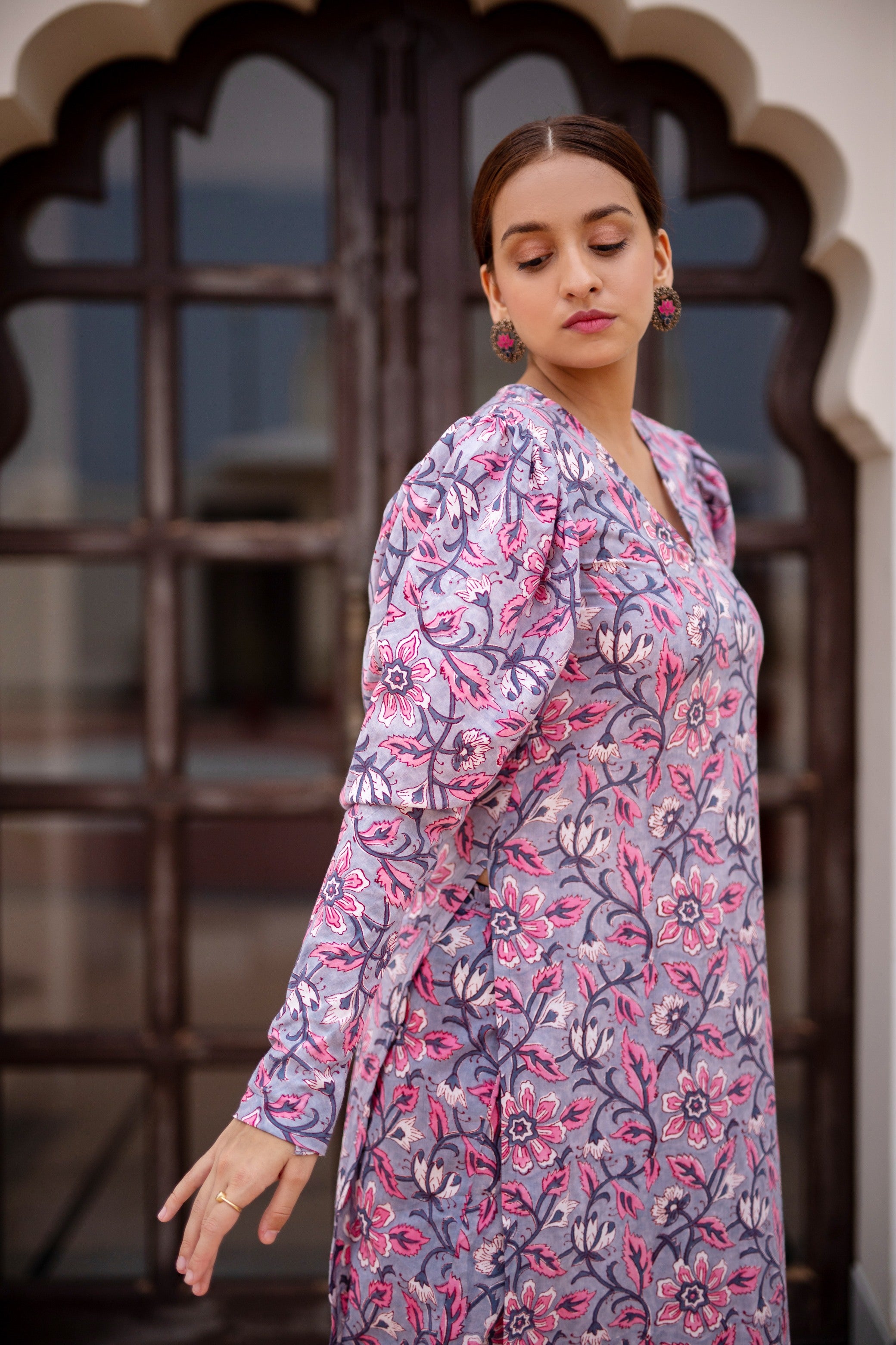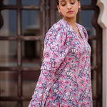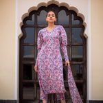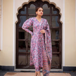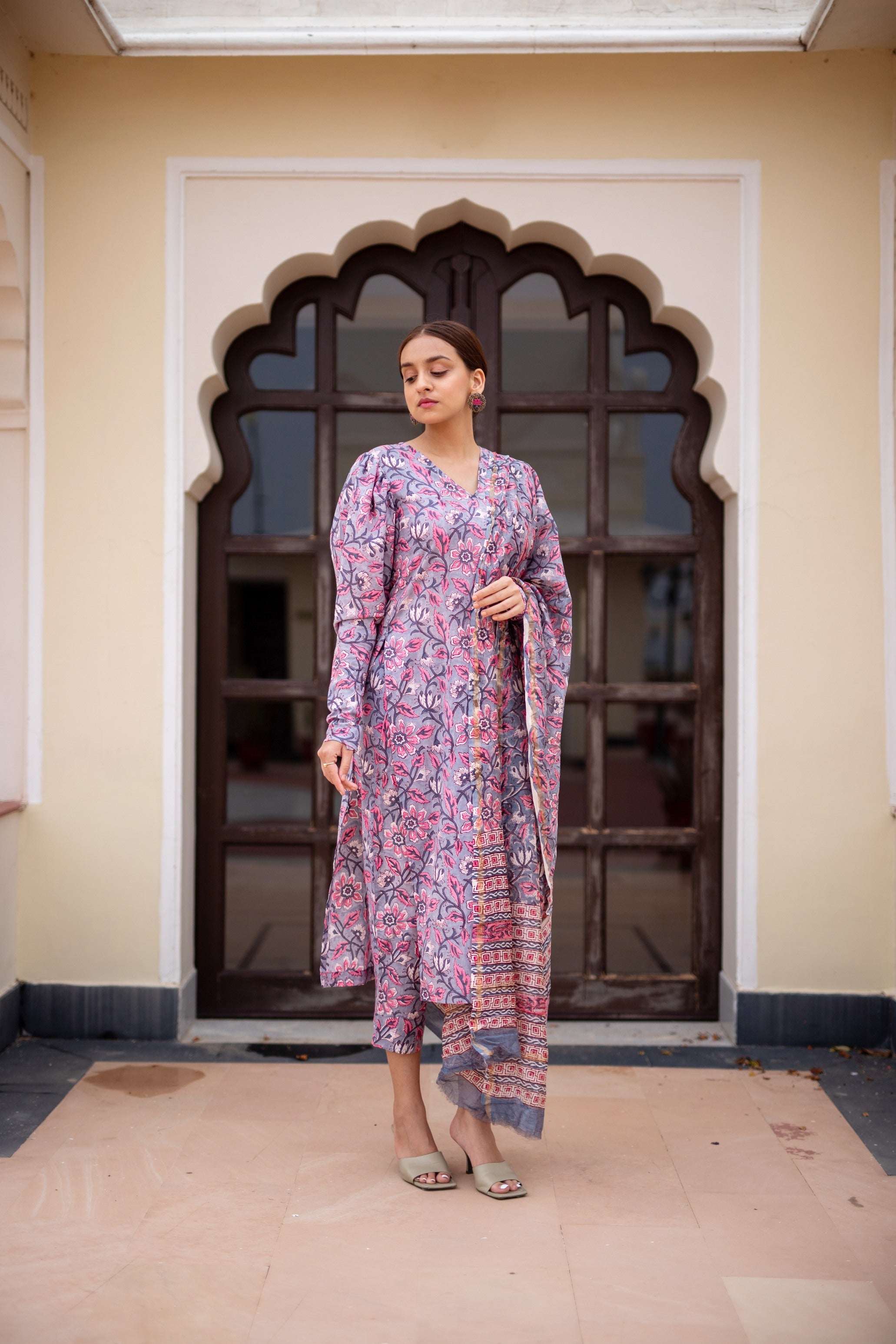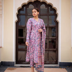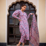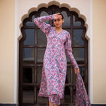 Featuring A Straight Fit Kurta In Cotton Base Block Print. It Is Paired With Matching Pants And Dupatta.