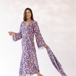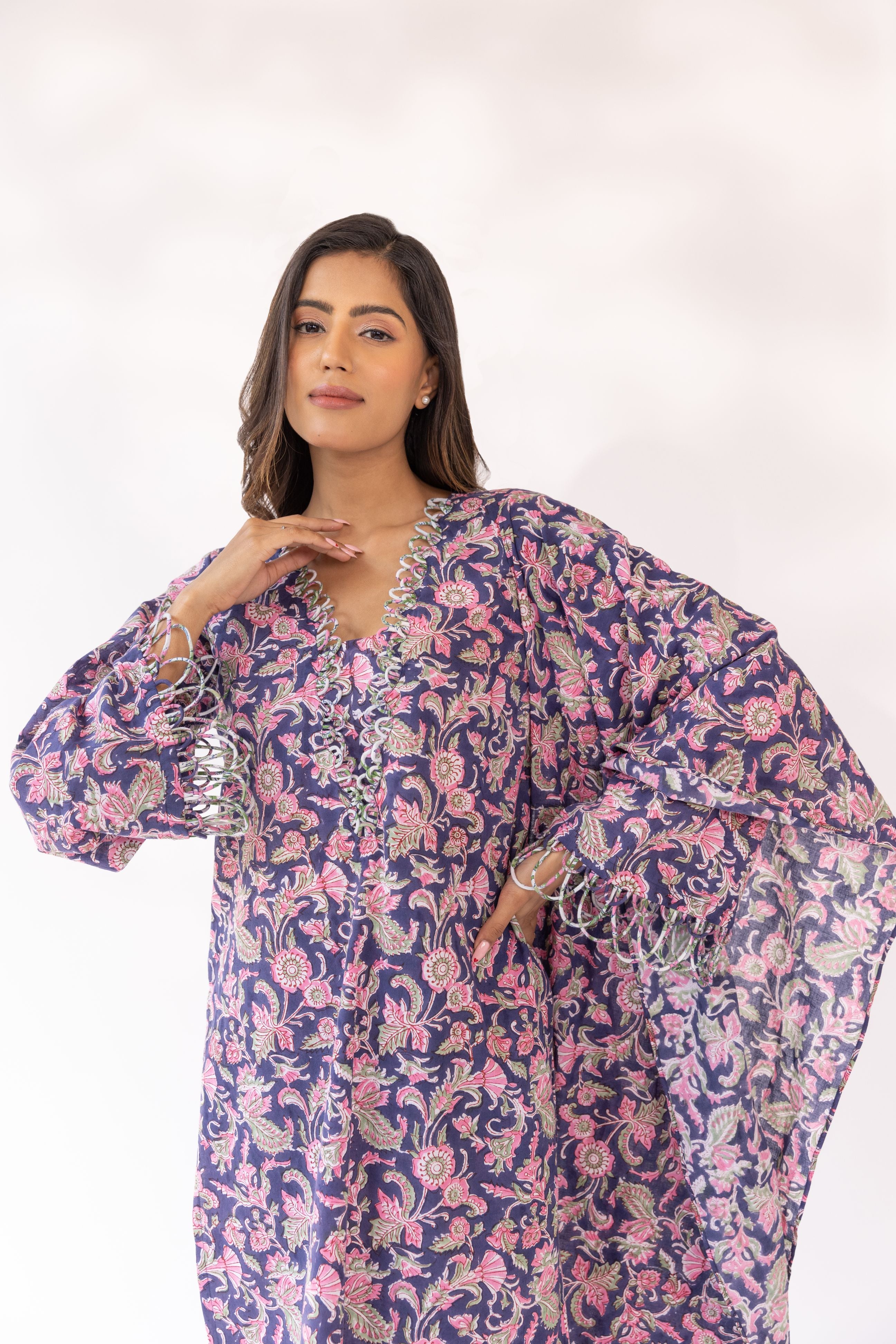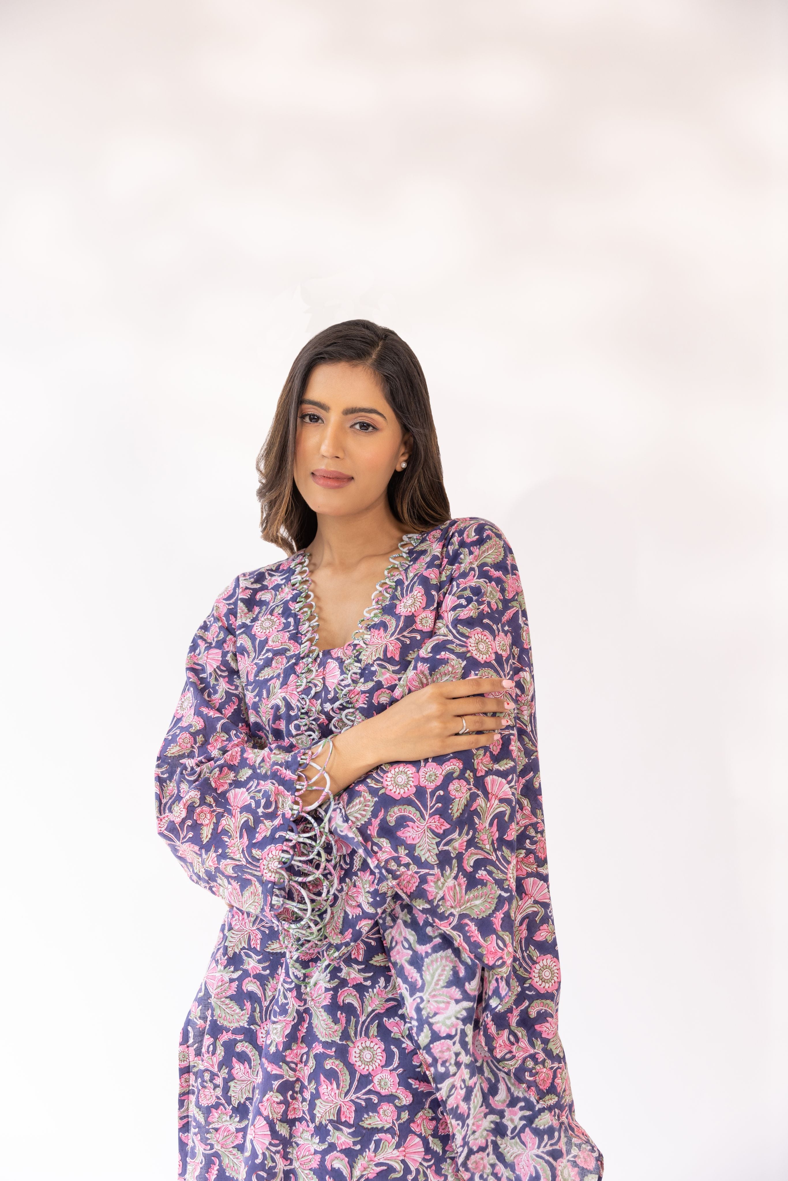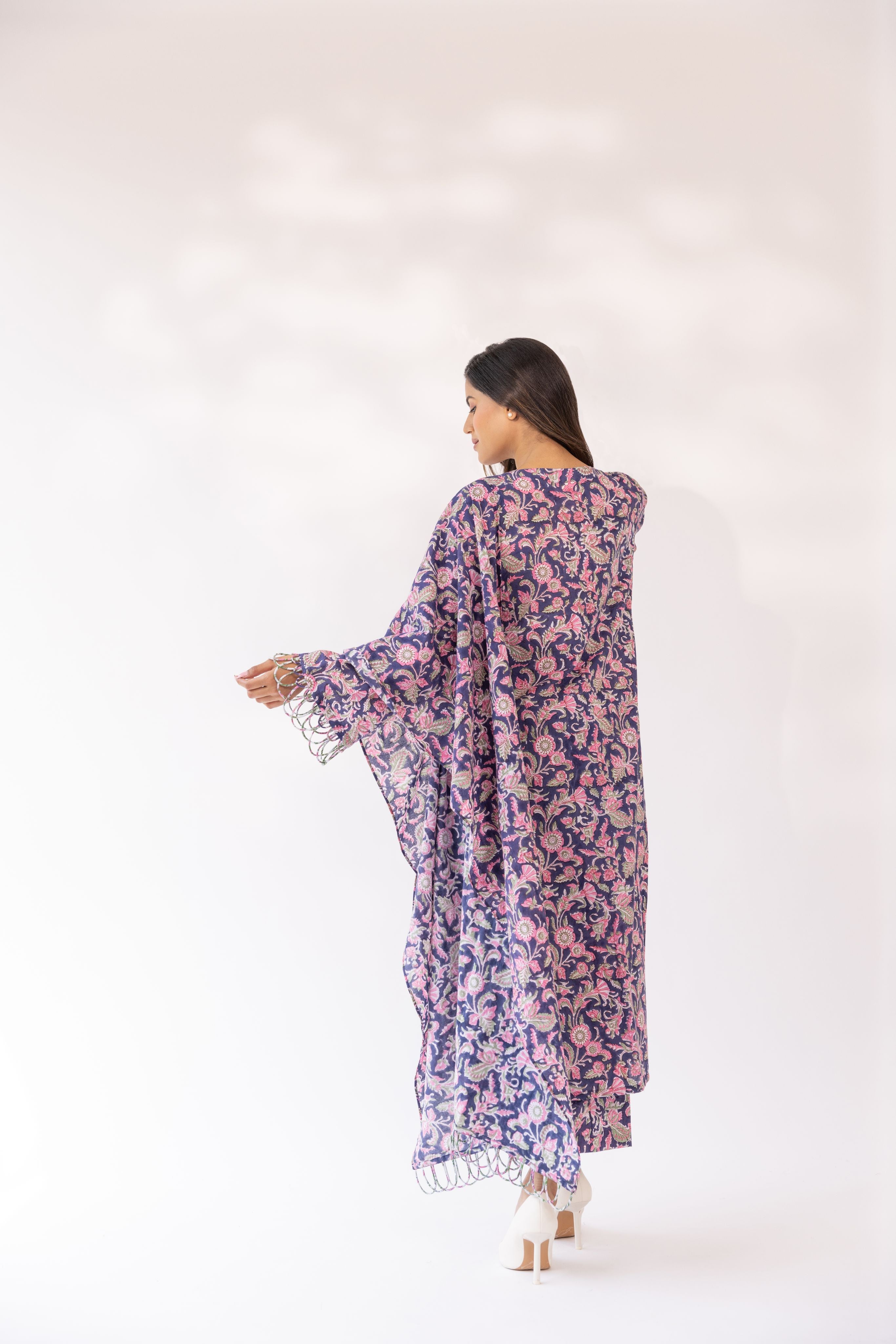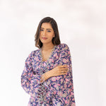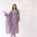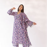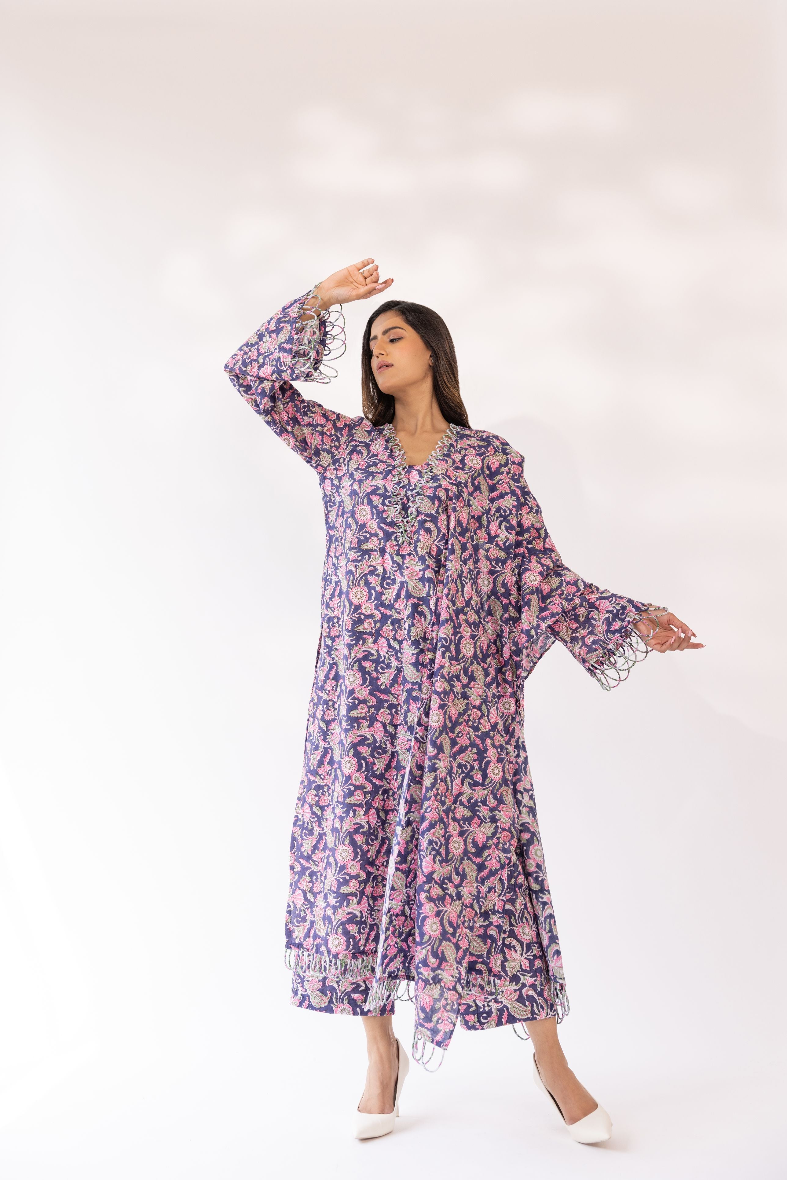 Featuring a purple kurta set in cotton base detailed with scalloped edging , paired with matching pants and dupatta.
