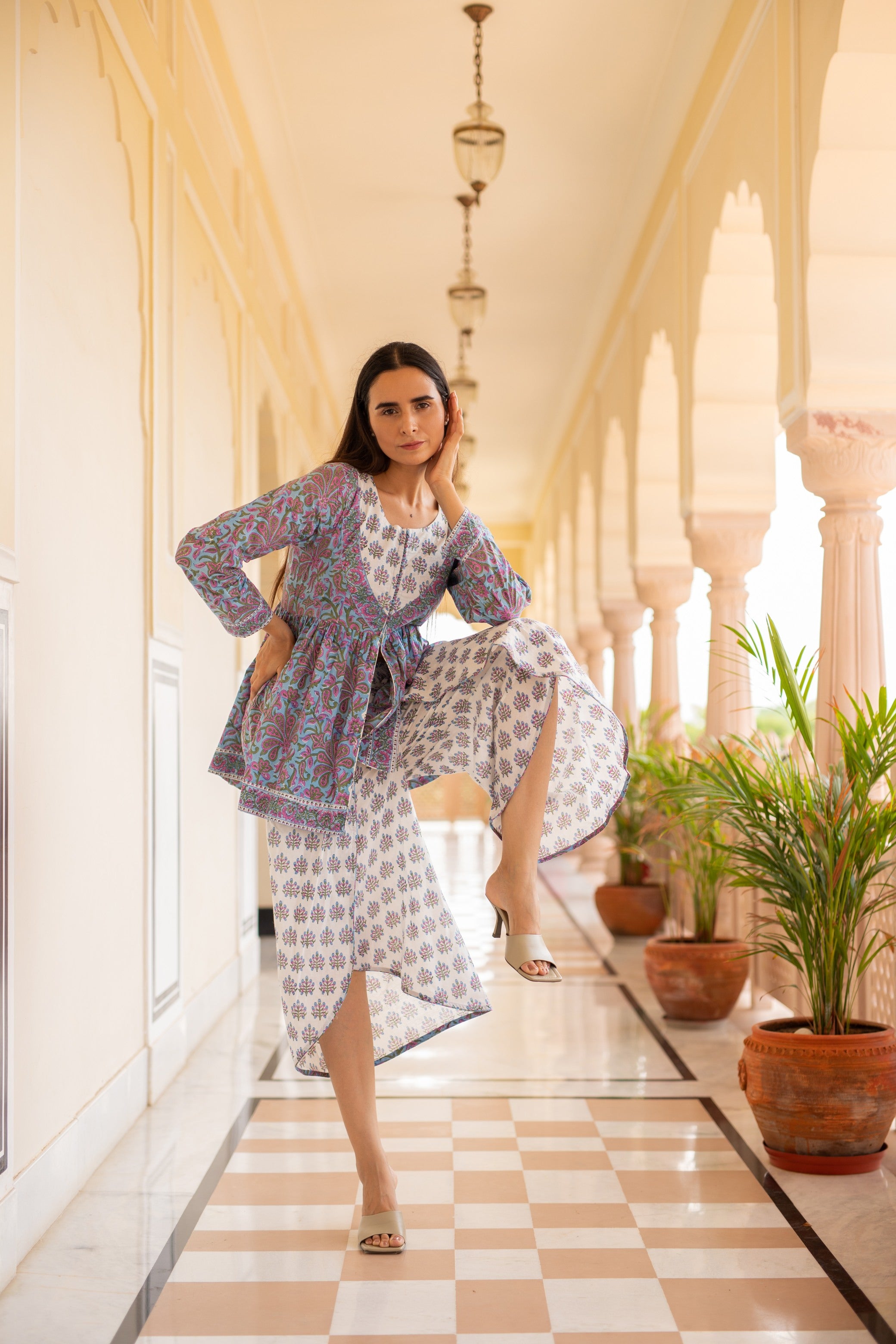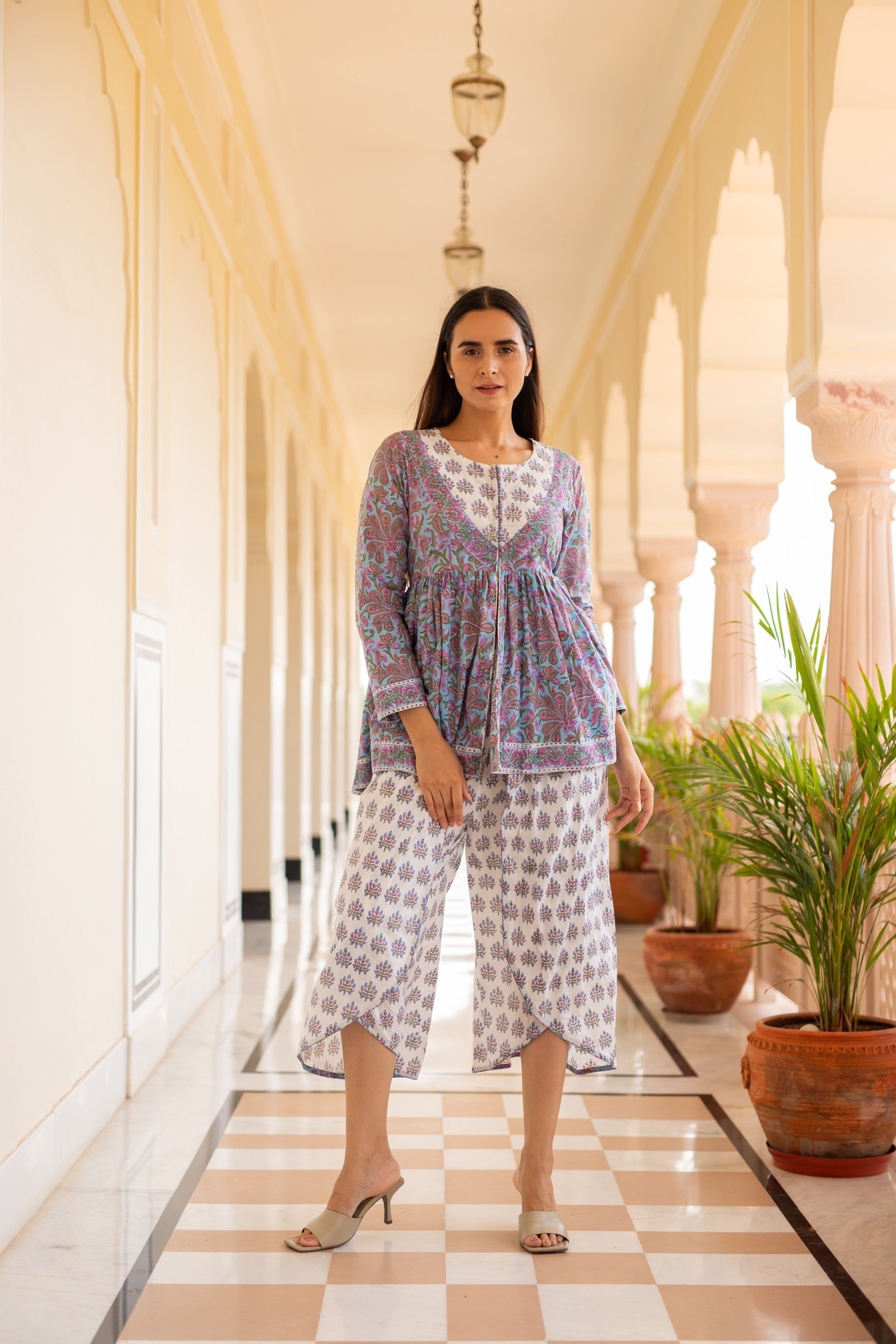 Featuring Short Block Printed Tunic With Dhoti Pants.