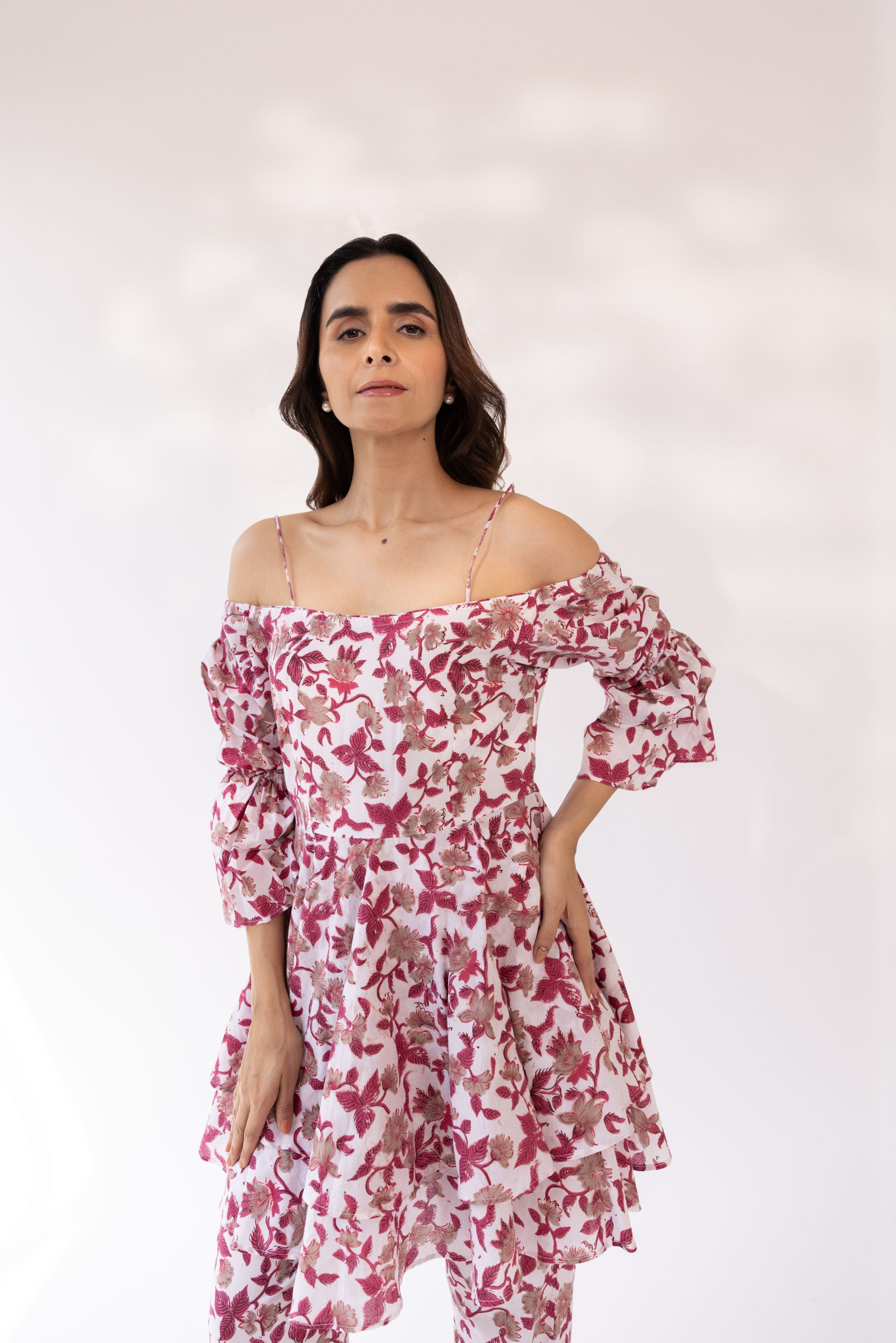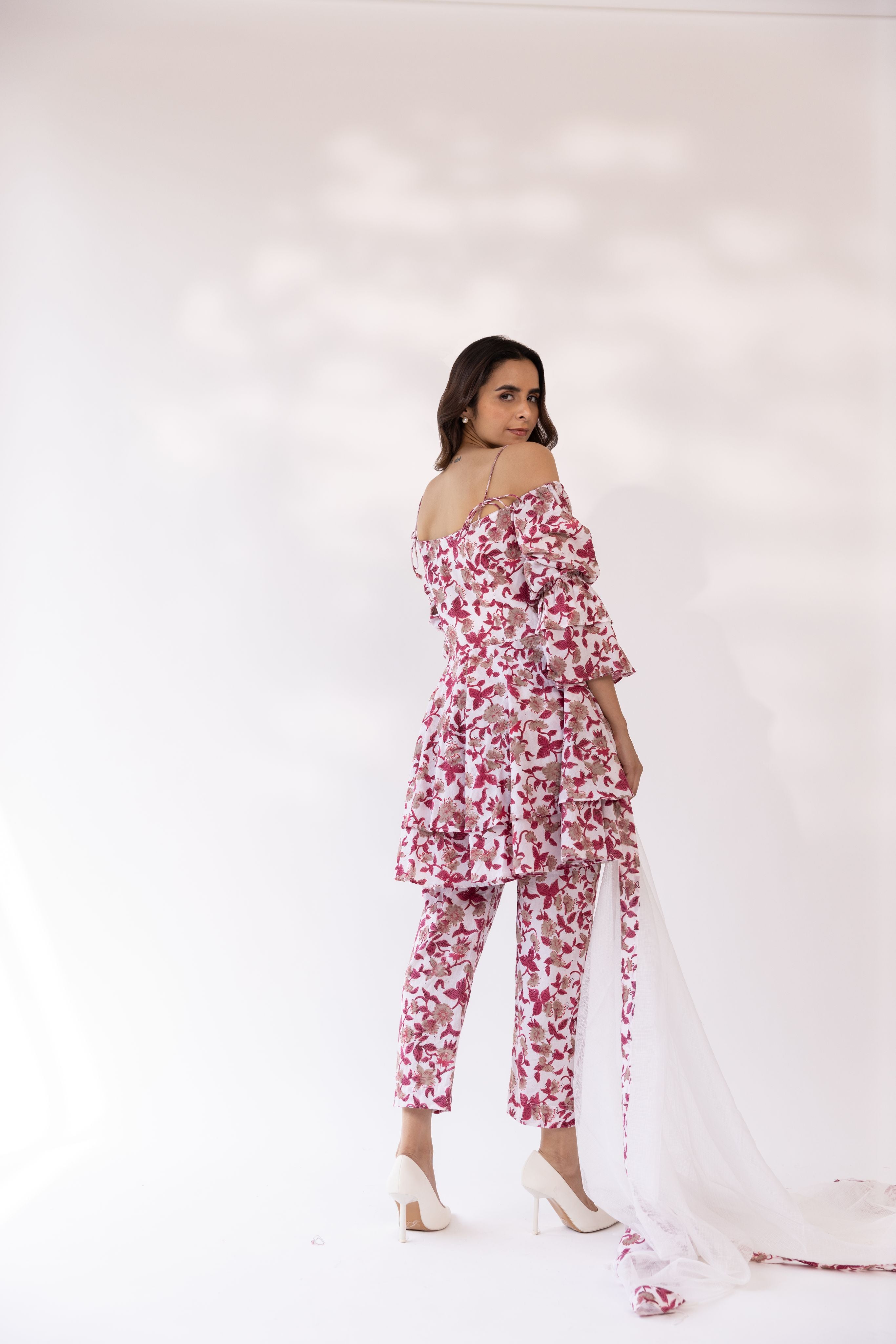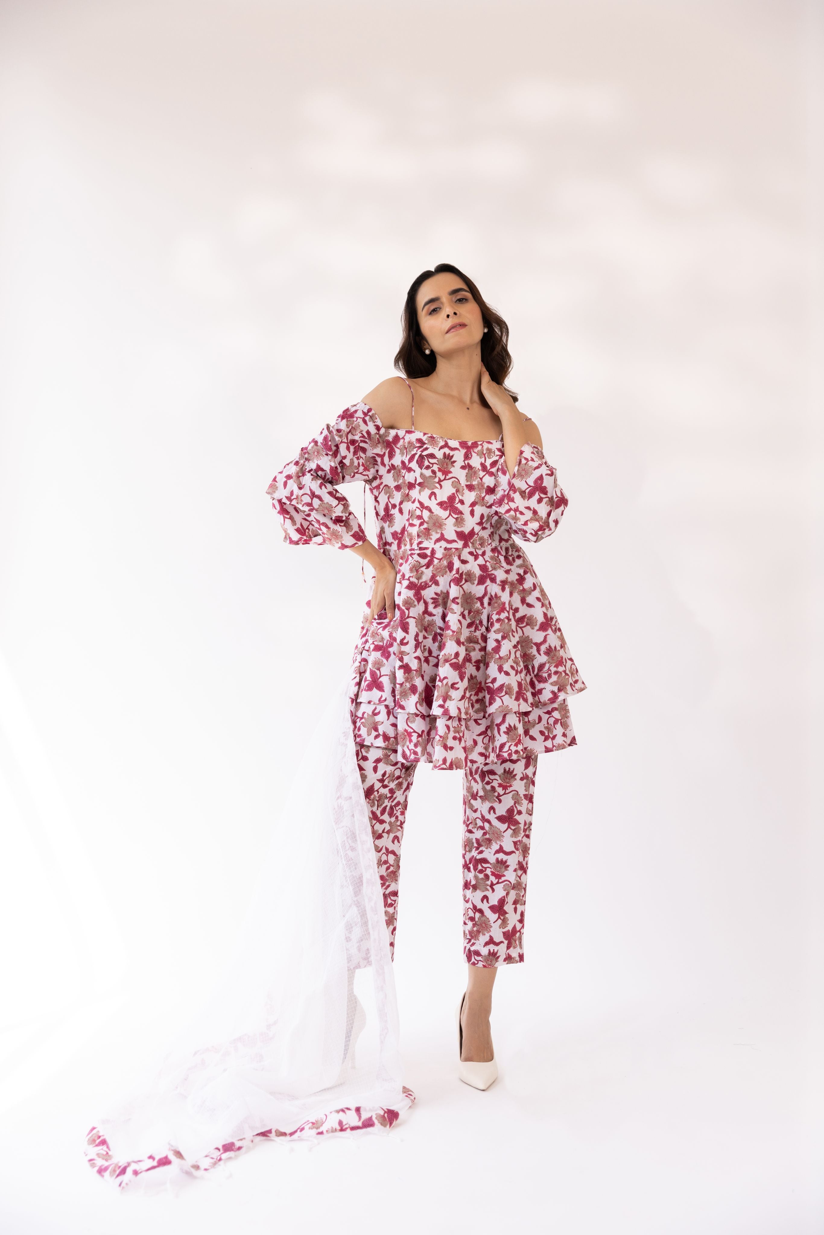 Pari Blockprinted Off Shoulder Kurta Set With Dupatta